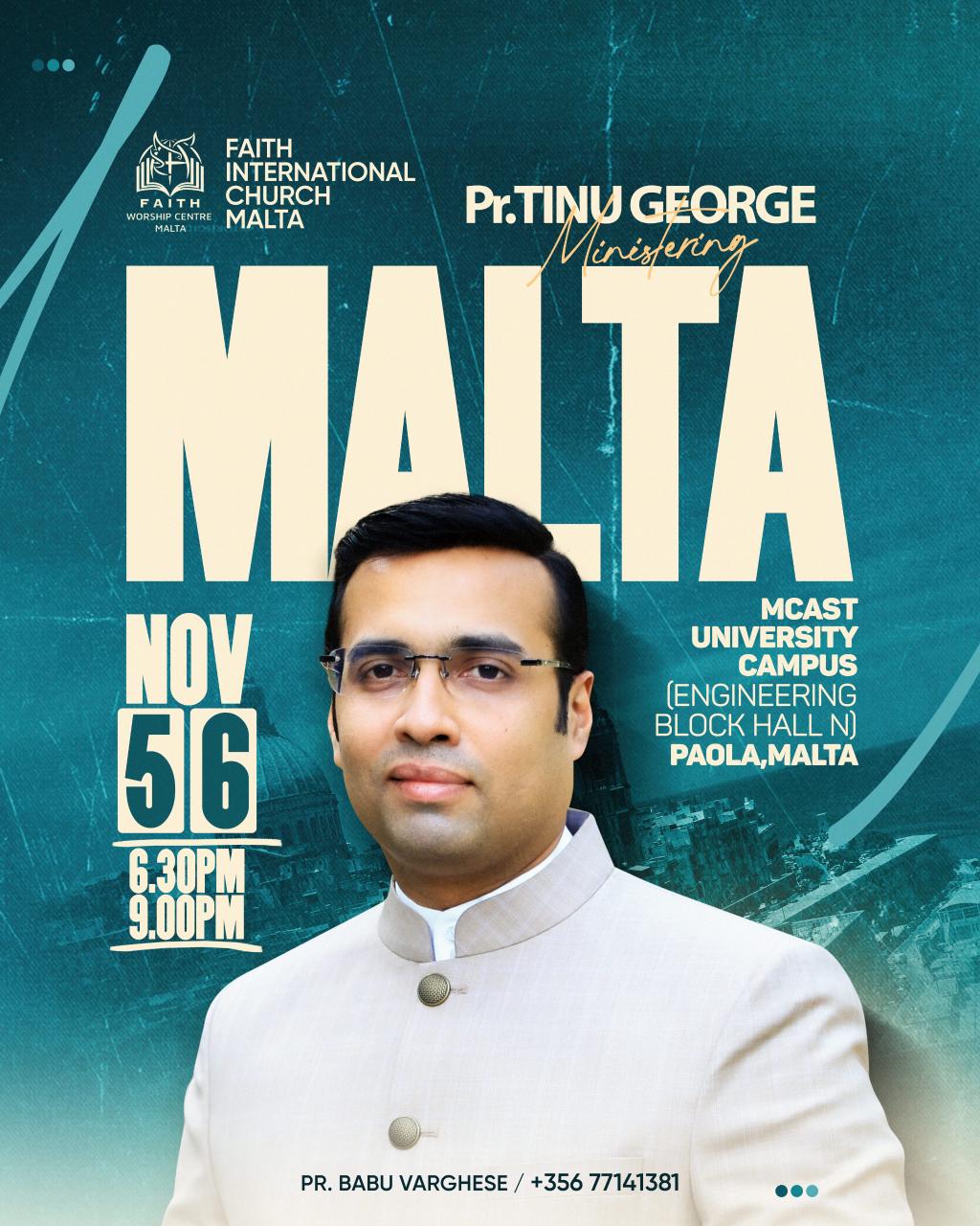Pastor Tinu George Ministering in Malta | Nov 5 & 6
