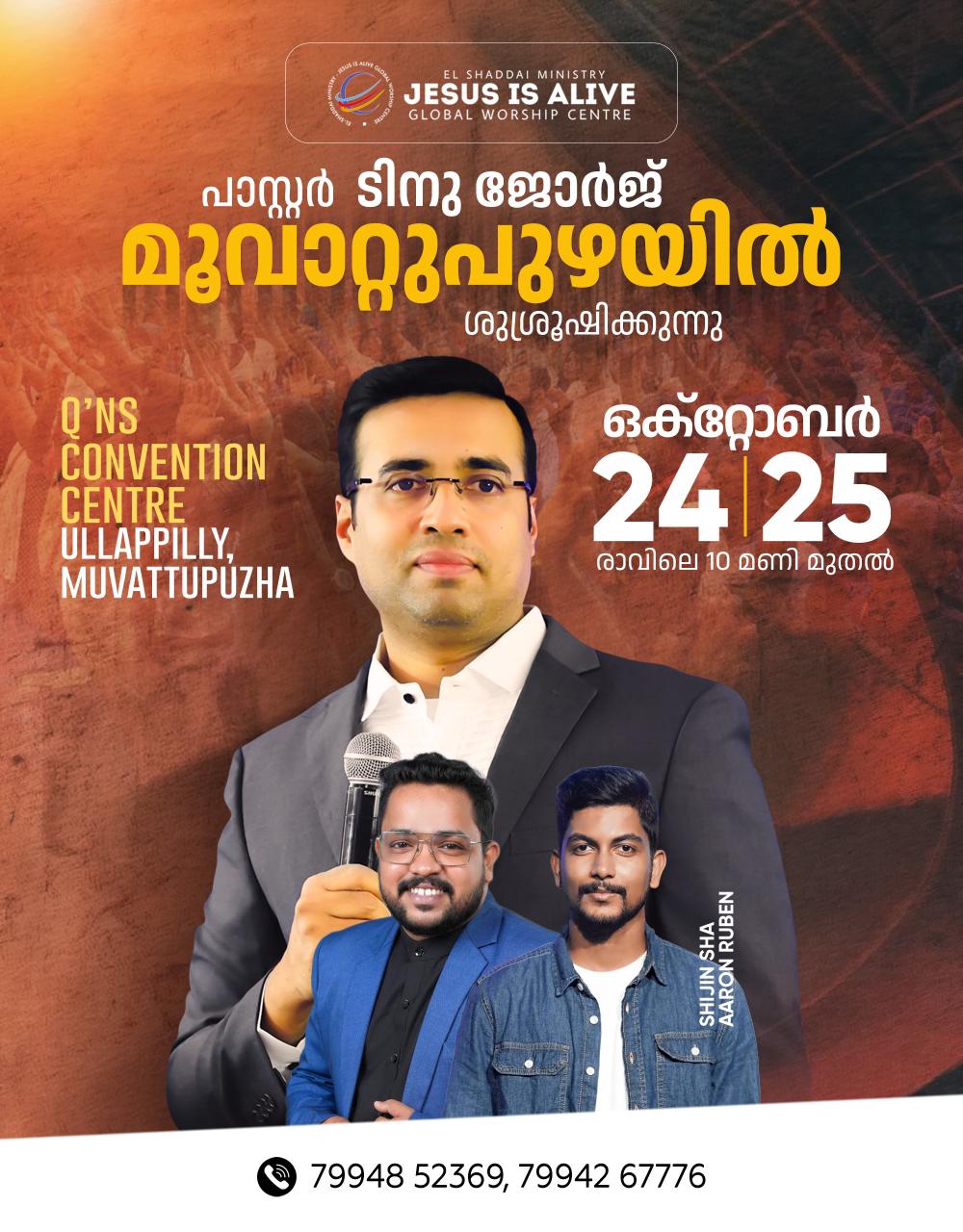 Pastor Tinu George at Muvattupuzha Oct 24 & 25